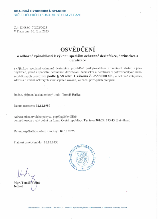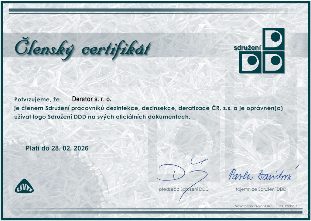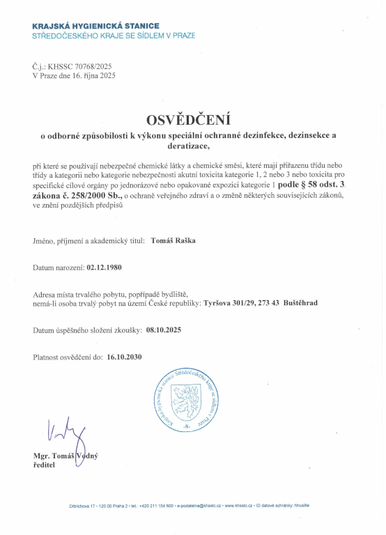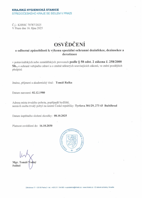 Osvědčení o odborné způsobilosti DDD - Mistrovský a toxický kurz