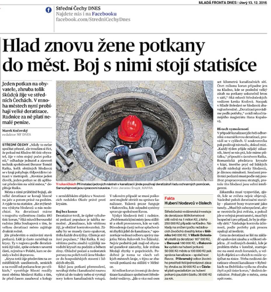 Článek z 13. 12. 2016 ,,Hlad znovu žene potkany do měst. Boj s nimi stojí statisíce."